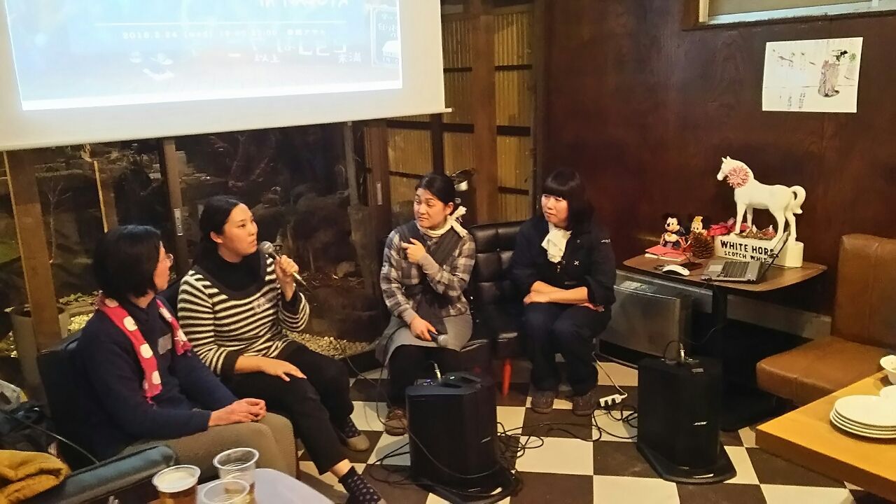 料理だけかよ。笑。いえいえ、イベントも“こんなのもアリなんだ!”と思うほどに、緩やかだったんですが“女子限定。ときどき男子も”のトークセッション。ディープな白川村ライフや恵那市ライフのぶっちゃけトークをメインに、そこらへんで参加者どおしで話したりしながら、ゆるくたのしい時間でした(笑)