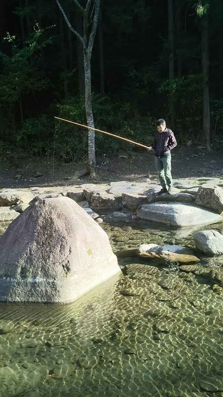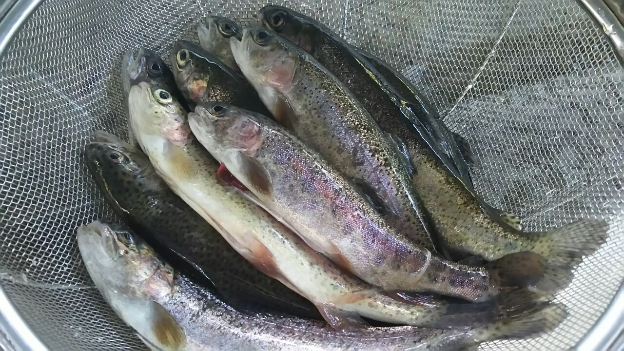 ポトフをグツグツ煮込んでいる間に、マス釣り場で天川くんとマスを釣りました。