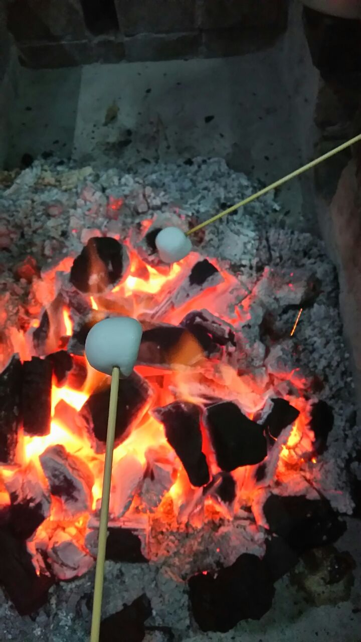 締めは、焼きマシュマロです。食べきれないかなあと思いながら、小さい少量入りのマシュマロを2袋買ってきましたが、ごめんなさい。次回はもう少し大きいサイズにしますね。