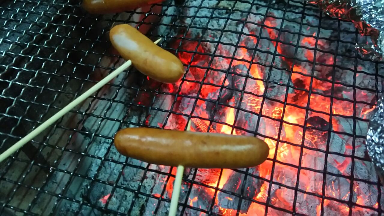 さて、子どももBBQに参加できるお楽しみ(まあ、今回は大人しかいないけれど)ニッポンハムの「シャウエッセン」の「ウインナーの串焼き」。これも、自分で串に刺して焼いて食べるのが美味しいんだよ。