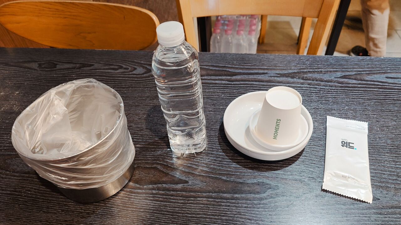 お水は、ペットボトル(未開封)がもらえます。おしぼりもついてきます!