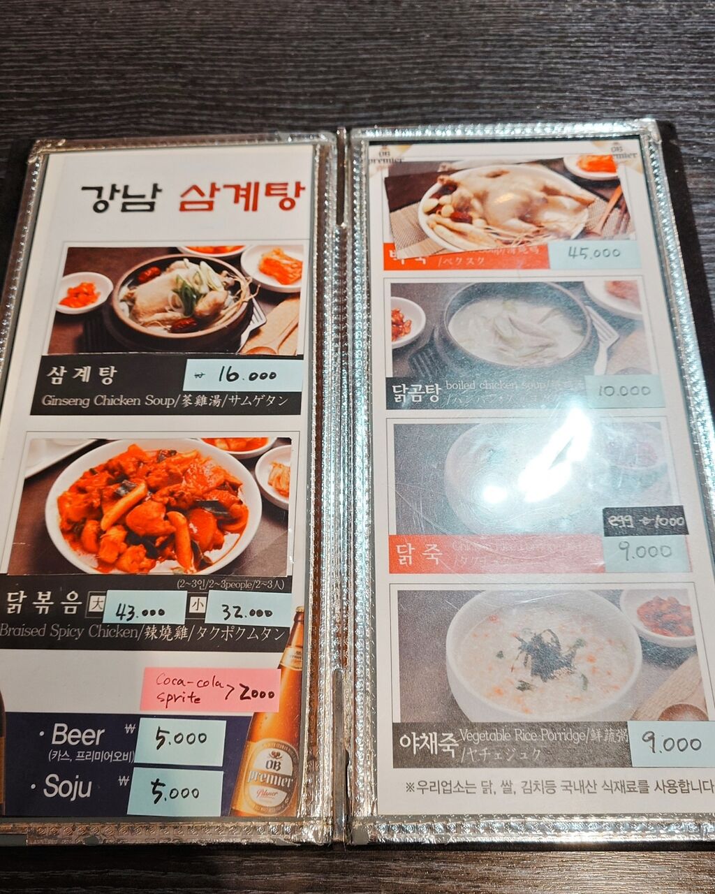 メニューはこちら。韓国人の常連さんは、メニューを見ずに注文しています。メニューには日本語表記もあって、店員さんも、理解してくれます。